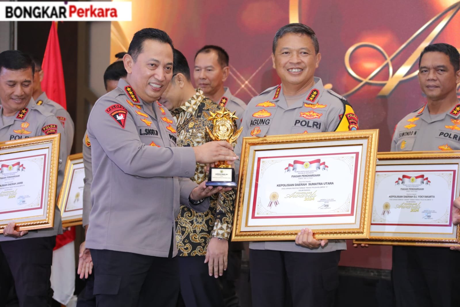 Penghargaan tersebut diserahkan langsung oleh Kapolri Jenderal Pol Listyo Sigit Prabowo kepada Kapolda Sumut Komjen Pol Agung Setya Imam Effendi, Rabu malam (17/7/2024) di Jakarta.