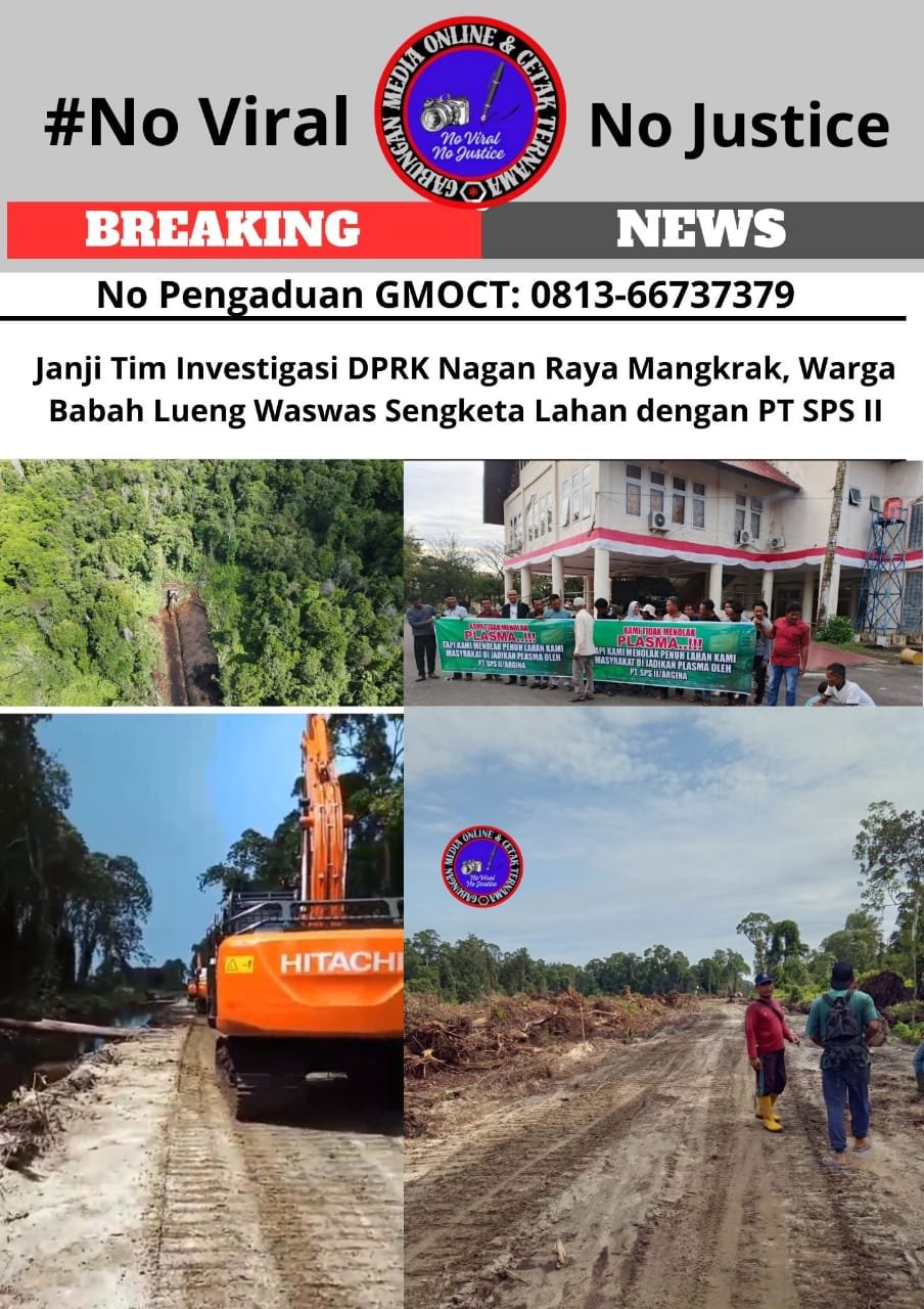 Bongkar Perkara.Com Nagan Raya, 26 Januari 2025 – Ketidakpastian menyelimuti masyarakat Babah Lueng, Kecamatan Tripa Makmur, Kabupaten Nagan Raya, Aceh, terkait sengketa lahan mereka dengan PT SPS II. Hampir sepekan setelah audensi di Dewan Perwakilan Rakyat Kabupaten (DPRK) Nagan Raya pada 19 Januari 2025, janji pembentukan tim investigasi untuk meninjau lokasi lahan yang disengketakan belum juga terealisasi. Informasi ini diperoleh GMOCT (Gabungan Media Online dan Cetak Ternama) dari Bongkarperkara.com, anggota GMOCT. GMOCT sendiri sebelumnya telah memberitakan rencana pembentukan tim investigasi ini dengan judul “DPRK Nagan Raya Bentuk Tim Investigasi Atasi Sengketa Lahan Plasma di Babah Lueng” pada 15 Januari 2025.