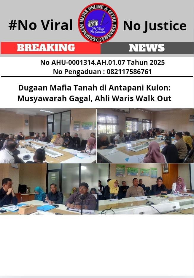 Bongkar Perkara.com Bandung, Jawa Barat – Musyawarah yang digelar Asisten Pemerintahan dan Kesejahteraan Rakyat (Asda 1) Kota Bandung, Asep Gufron, pada Kamis (20/3/2025) terkait dugaan mafia tanah di Antapani Kulon berakhir tanpa hasil. Musyawarah yang diinisiasi atas instruksi Wakil Walikota Bandung, H. Erwin, S.E., M.Pd, untuk menyelesaikan permasalahan sengketa tanah ahli waris almarhum H. Satibi dengan Nyonyo Wibisana, diwarnai aksi walk out dari pihak ahli waris. Informasi ini didapatkan GMOCT (Gabungan Media Online dan Cetak Ternama) dari media online Ungkap.id yang tergabung dalam GMOCT.