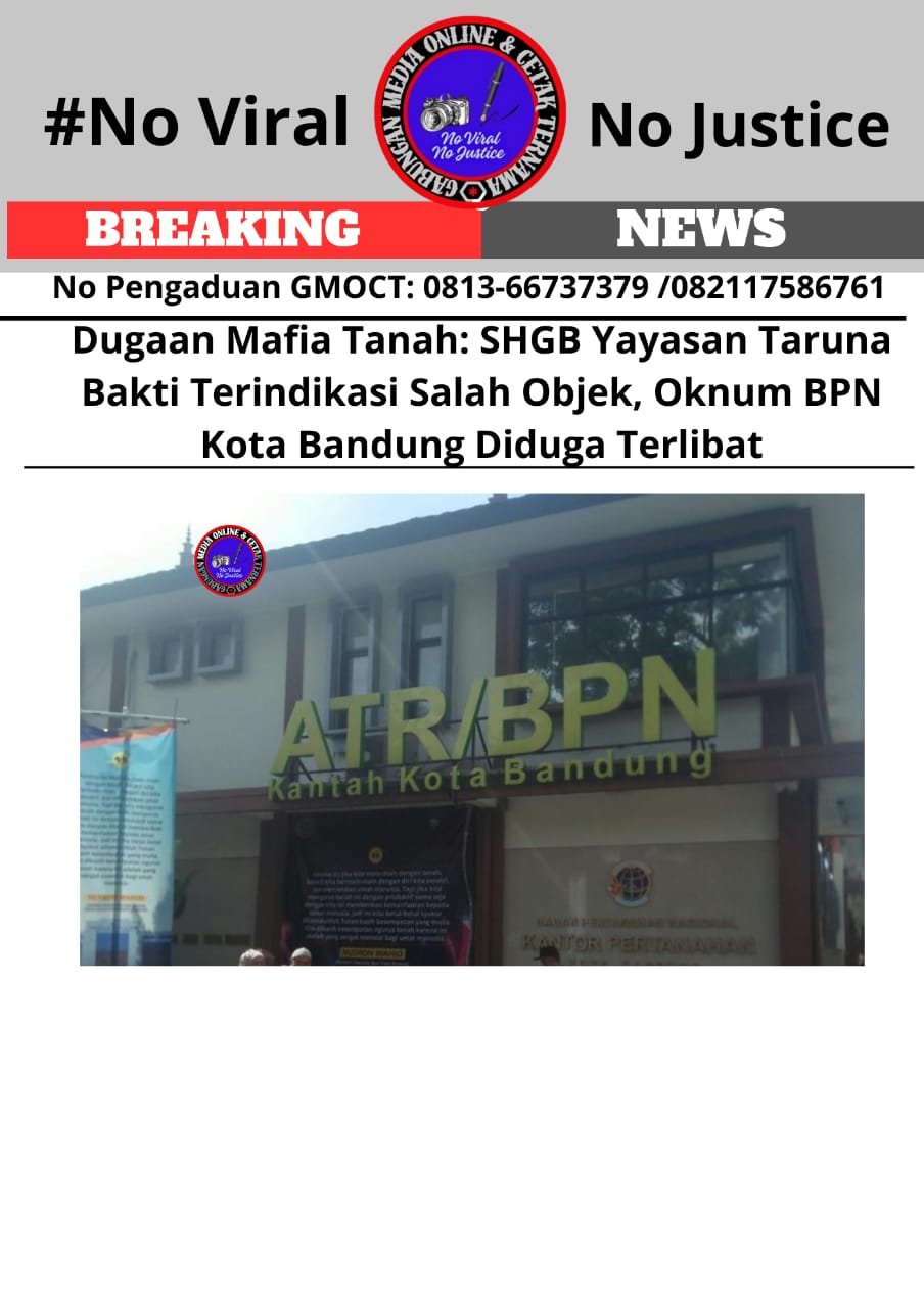 Dugaan Mafia Tanah: SHGB Yayasan Taruna Bakti Terindikasi Salah Objek, Oknum BPN Kota Bandung Diduga Terlibat