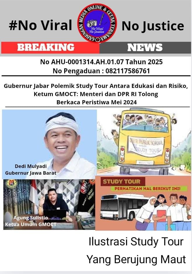 Gubernur Jabar Polemik Study Tour Antara Edukasi dan Risiko, Ketum GMOCT Menteri dan DPR RI Tolong Berkaca Peristiwa Mei 2024