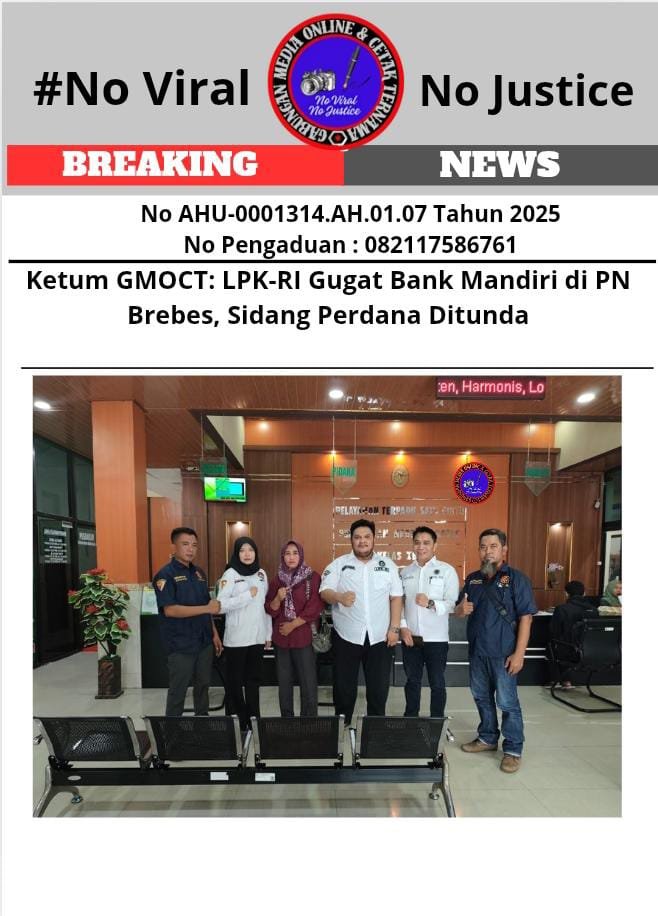 Brebes, 18 Maret 2025 – Bongkarperkara.com-Lembaga Perlindungan Konsumen Republik Indonesia (LPK-RI) menggelar sidang perdana di Pengadilan Negeri (PN) Brebes hari ini, Jumat (18/3/2025). Sidang ini terkait gugatan terhadap PT. Bank Mandiri atas dugaan pelanggaran Undang-Undang Nomor 8 Tahun 1999 tentang Perlindungan Konsumen. Gugatan yang didaftarkan pada 7 Maret 2025 lalu ini bertujuan untuk mencari kepastian hukum bagi konsumen yang merasa dirugikan oleh kebijakan Bank Mandiri.