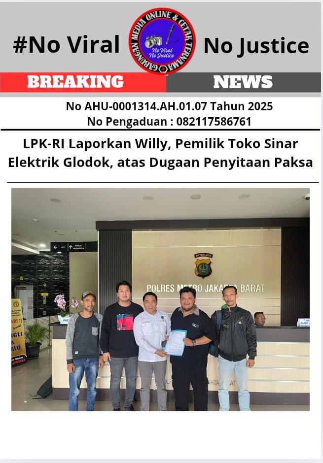 Bongkar Perkara.com Jakarta, 27 Maret 2025 GMOCT – Lembaga Perlindungan Konsumen Republik Indonesia (LPK-RI) melaporkan Willy, pemilik Toko Sinar Elektrik Glodok, Jakarta Barat, atas dugaan penyitaan paksa barang-barang di Toko Istana Lampu Murata. Kejadian ini bermula pada 19 Maret 2025, ketika Willy, bersama Bu Aling dan lima orang lainnya, melakukan penyitaan barang tanpa izin dari pemilik Toko Istana Lampu Murata, Charles, untuk menagih pembayaran yang terlambat. Aksi tersebut terekam CCTV dan mengakibatkan kerugian diperkirakan mencapai Rp1,2 miliar bagi Charles.