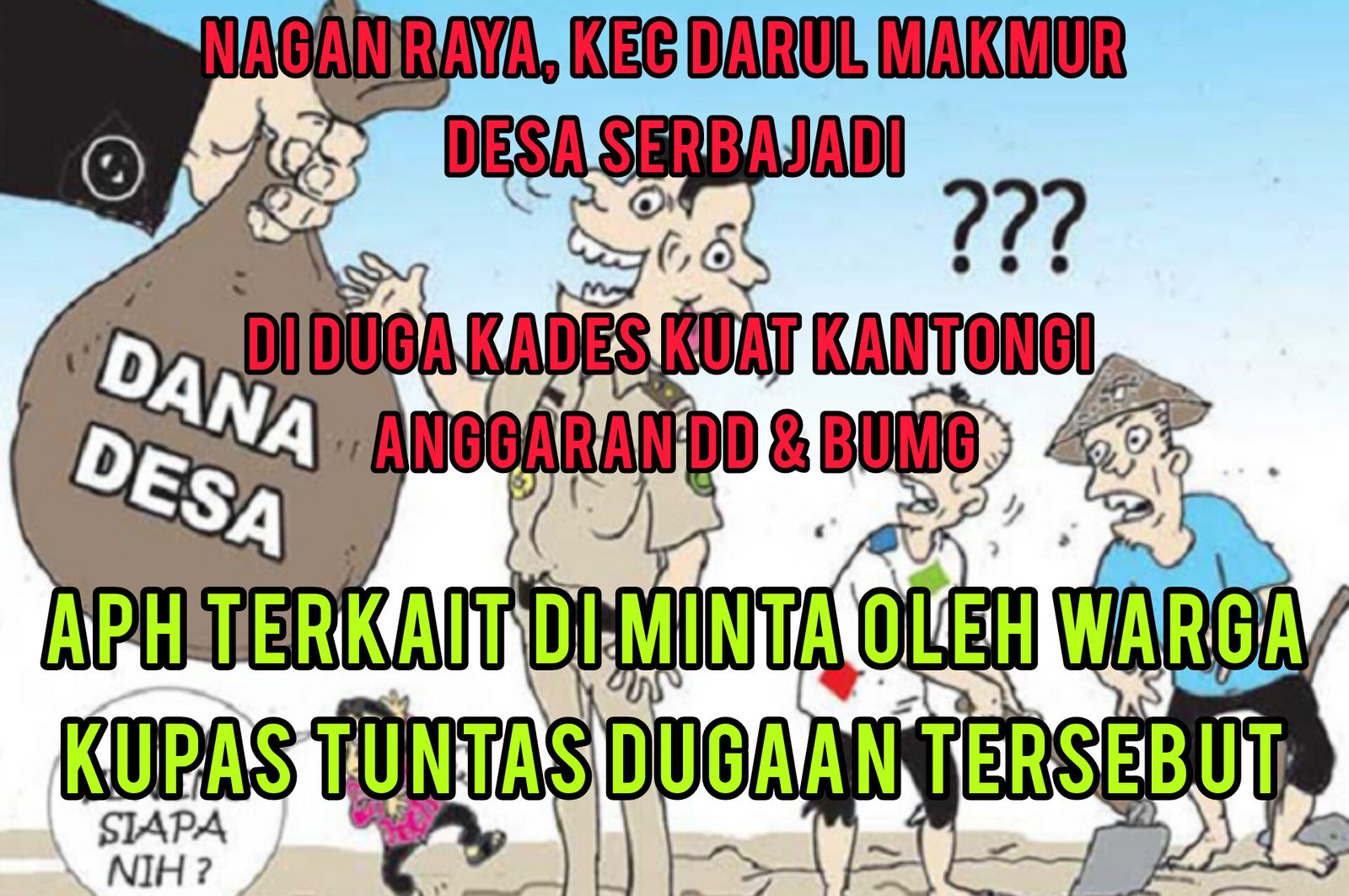 Memohon kepada aparat penegak hukum – APH menindak lanjuti penggunaan dana desa sidojadi kecamatan darul makmur Kabupaten Nagan Raya di usut sampai tuntas semoga dana desa dapat dinikmati masyarakat bukan untuk memperkaya diri