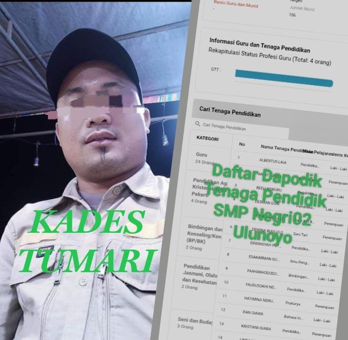 Faahakhododo Nduru, Kepala Desa (Kades) Tumari Kecamatan Lolomatua Kabupaten Nias Selatan, Sumatra Utara, tengah menjadi sorotan publik. Ia diduga merangkap jabatan sebagai Tenaga Pendidik (TENDIK) atau guru honorer di SMP Negeri 02 Ulunoyo, sekaligus tercatat sebagai penerima dana terpencil (DACIL). Dugaan ini memicu kekhawatiran akan pelanggaran aturan yang berlaku bagi aparatur pemerintahan desa.