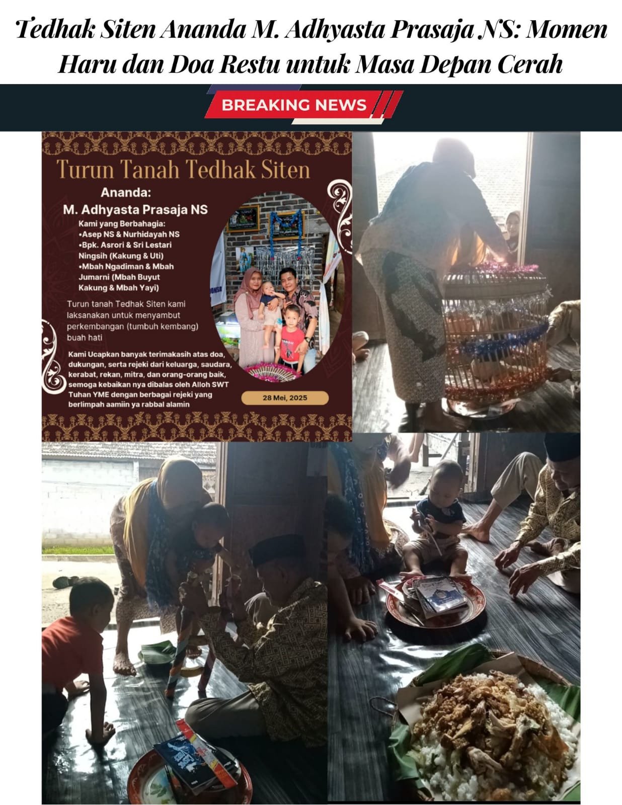 Bongkar Perkara.com Kabupaten Semarang – Suasana penuh haru dan kebahagiaan mewarnai acara Tedhak Siten Ananda M. Adhyasta Prasaja NS, putra dari Asep NS (Pemred Penajournalis.com/Sekretaris Umum GMOCT) dan Nurhidayah NS (Pemred Lintangpena.com/Bendahara Umum GMOCT), pada Rabu, 28 Mei 2025 bertempat di Dsn. Segeni RT 05 RW 01 Desa Pagersari Kecamatan Bergas Kabupaten Semarang Jawa Tengah.