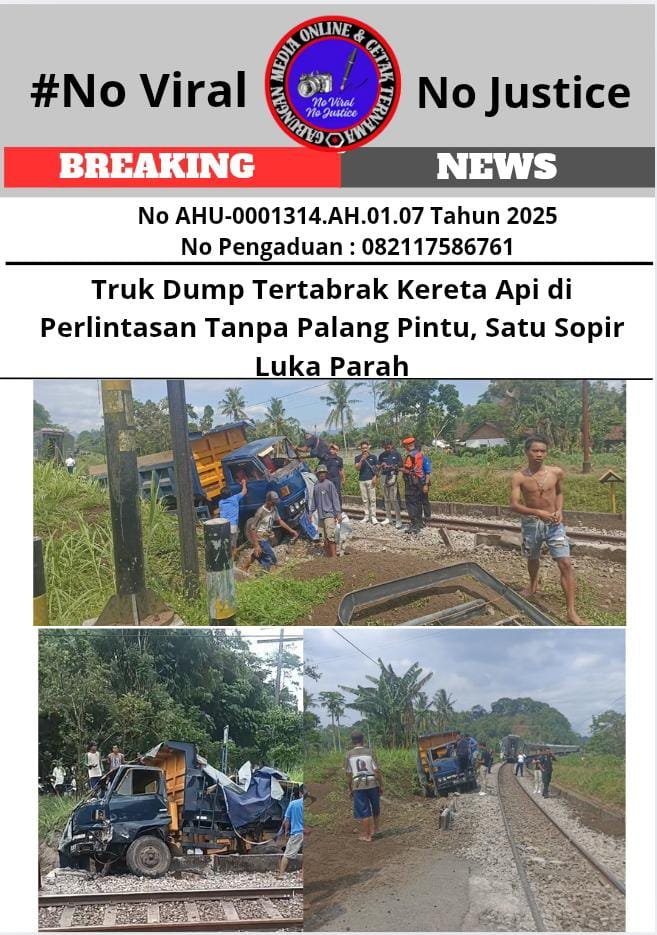 Bongkar perkara.com Jember, (GMOCT) – Kecelakaan tragis terjadi di perlintasan kereta api tanpa palang pintu dan penjaga di Dusun Krajan, Desa Plalangan, Kalisat, Jember, Rabu (30/4/2025) sekitar pukul 13.00 WIB. Sebuah truk dump pengangkut pasir tertabrak kereta api yang tengah melaju dari Jember menuju Banyuwangi. Akibatnya, sopir truk mengalami luka parah dan harus dilarikan ke rumah sakit untuk mendapatkan perawatan intensif. Truk mengalami kerusakan berat.