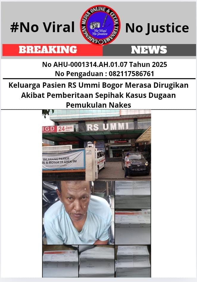 Bongkar perkara.com – Aceh, Bogor (GMOCT) – Keluarga pasien Rumah Sakit Ummi Bogor merasa dirugikan oleh pemberitaan sepihak terkait dugaan pemukulan tenaga kesehatan (nakes). Kejadian bermula saat pasien stroke dibawa ke UGD, namun ditolak dengan alasan kamar penuh, meskipun keluarga pasien siap membayar biaya pengobatan secara umum.