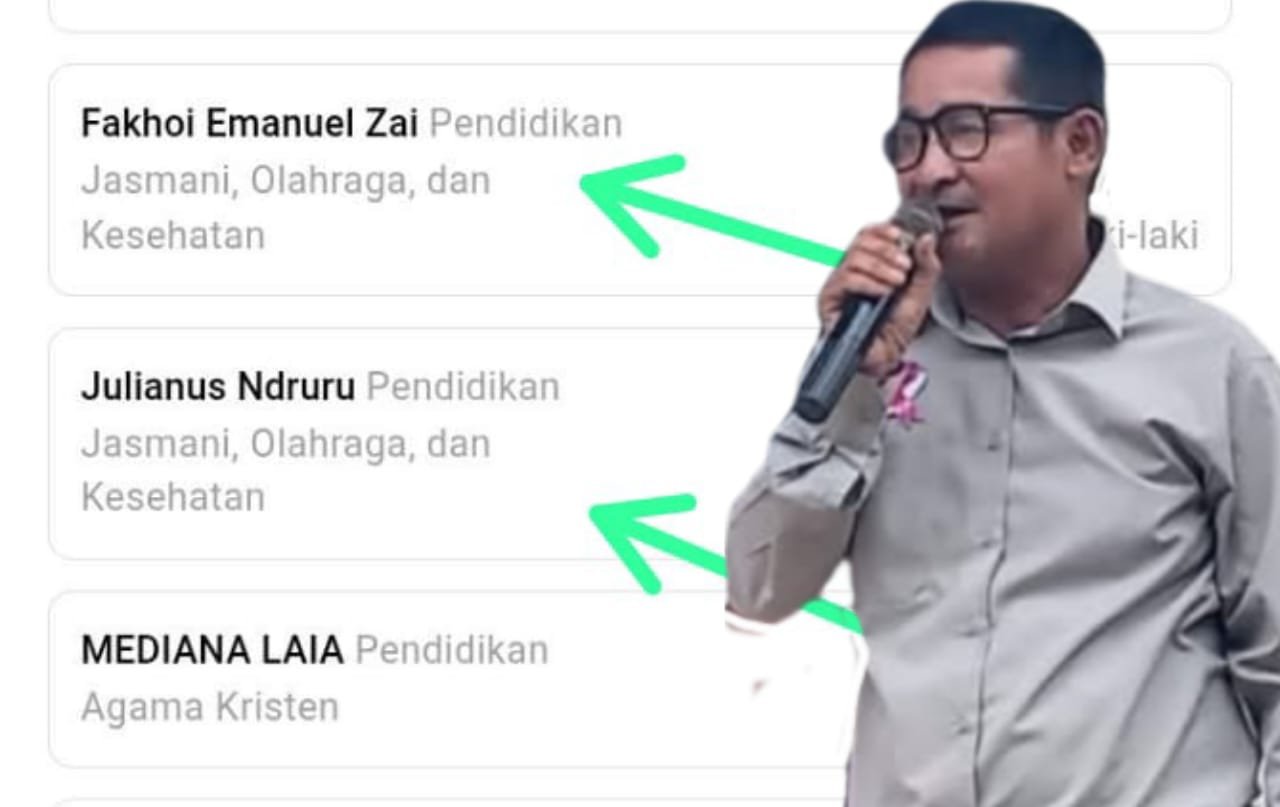 Informasi yang diperoleh menyebutkan bahwa dua nama yang tercantum sebagai tenaga pendidik di SD Negeri yaitu Fakhoi Imanuel Zai dan Julianus Nduru ternyata tidak pernah mengajar di sekolah tersebut. Bahkan berdasarkan penelusuran tim investigasi di lapangan, keduanya bekerja di luar daerah dan tidak pernah terlibat dalam kegiatan belajar-mengajar di SD yang dipimpin oleh Taliasa Zai itu.