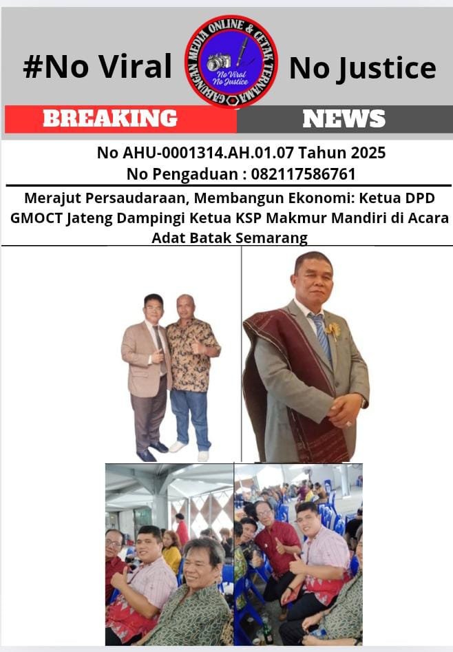 Bongkar perkara.com Semarang, 12 Juli 2025 (GMOCT) – Ketua KSP Makmur Mandiri, Drs. Tumbur Naibaho, MM, turut serta dalam acara adat Batak Mangain Boru, Marhata Sinamot dohot Maria Raja di Sopo Godang HKBP Kertanegara, Semarang. Acara adat yang merupakan rangkaian pernikahan Doinus Hilarius Hot Raja Girsang, BA dan Dinda Sri Estu br. Tumanggor, S. Hub. Int. (yang akan dilangsungkan pada 19 Juli 2025) ini dihadiri ratusan warga Batak dari berbagai marga. Drs. Tumbur Naibaho, hadir sebagai Hula-hula Tulang, memberikan doa restu untuk kelancaran pernikahan dan keberkahan rumah tangga kedua mempelai.
