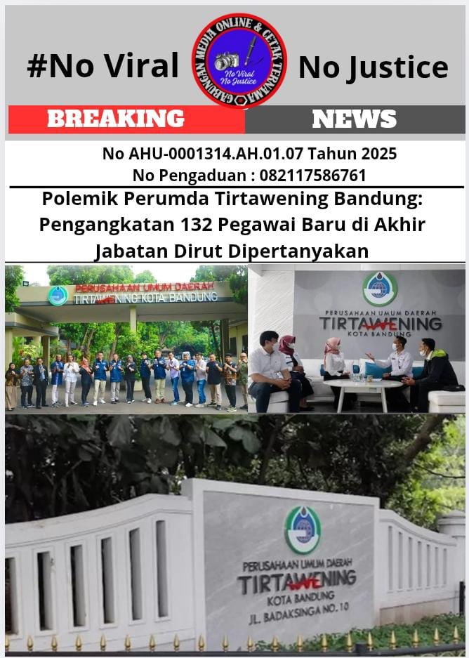 Bongkar perkara.com Bandung, 30 Juli 2025 (GMOCT) — Polemik mengiringi berakhirnya masa jabatan Direktur Utama (Dirut) Perumda Tirtawening Kota Bandung, Soni Salimi, pada 16 Juni 2025. Pengangkatan 132 pegawai baru di penghujung masa jabatannya menjadi sorotan utama publik dan DPRD Kota Bandung. Informasi ini didapatkan Gabungan Media Online dan Cetak Ternama (GMOCT), termasuk dari media online Pancabuananews yang tergabung dalam GMOCT.