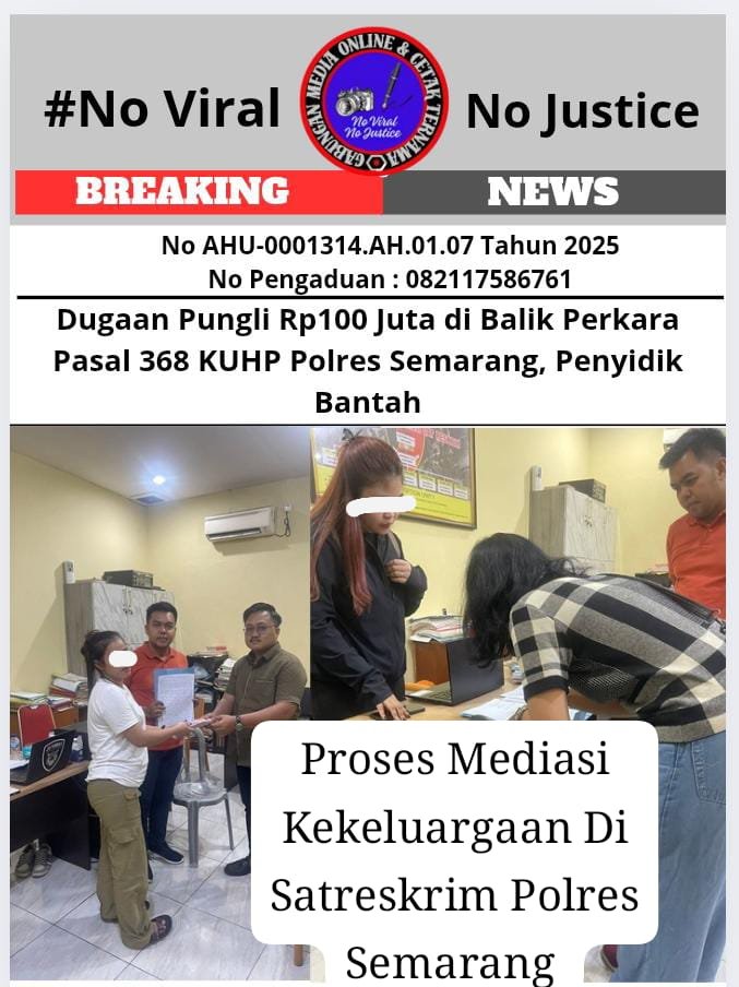 Bongkar perkara.com Semarang, Jawa Tengah 17 Agustus 2025 (GMOCT) – Perkara dugaan tindak pidana pemerasan sebagaimana dimaksud Pasal 368 Ayat (1) dan (2) KUHP dengan dasar LP/B/38/10/2025/SPKT/POLRES SEMARANG/POLDA JATENG tertanggal 22 April 2025, hingga kini masih terus bergulir meski telah dilakukan Restorative Justice (RJ) pada 15 Juni 2025 di Polres Semarang.