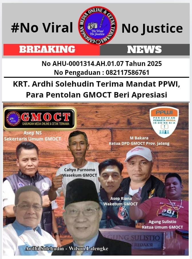 Bongkar perkara.com Kabupaten Semarang, – KRT. Ardhi Solehudin secara resmi menerima mandat dari Persatuan Pewarta Warga Indonesia (PPWI) untuk memimpin konsolidasi pewarta warga di wilayah Jawa Tengah. Penunjukan ini mendapatkan sambutan positif dari berbagai pihak, termasuk Gabungan Media Online dan Cetak Ternama (GMOCT), organisasi tempat Ardhi Solehudin pernah aktif.