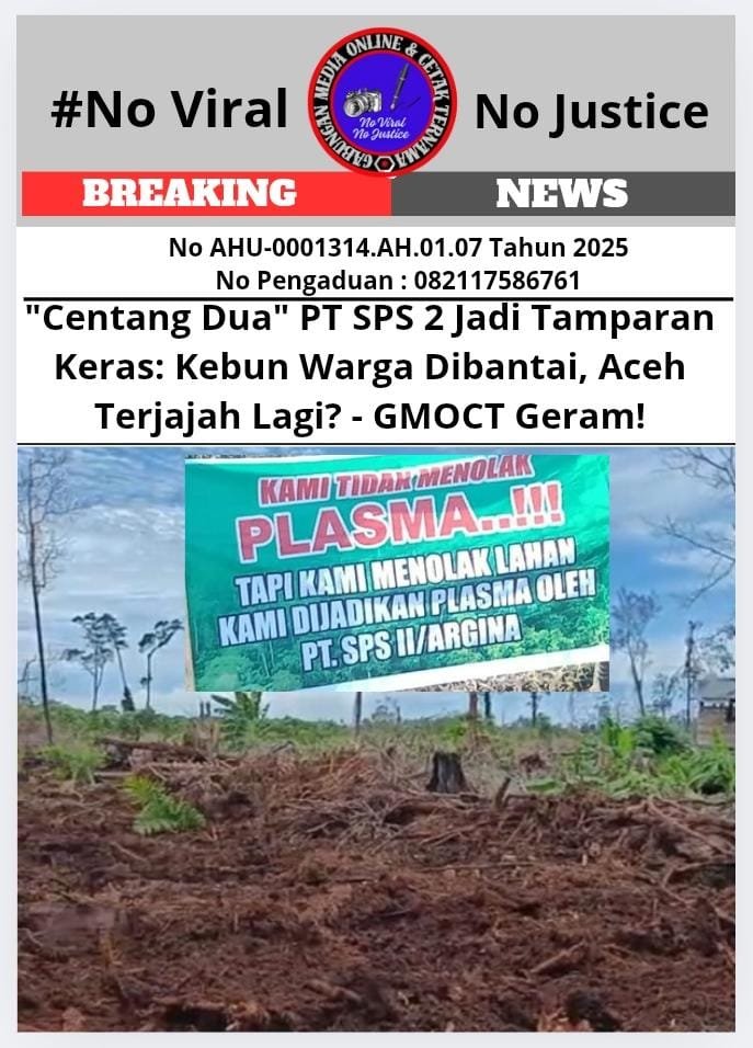 Nagan Raya, Aceh Bongkarperkara.com (GMOCT) 21 September 2025 – Jeritan rakyat kecil Aceh kembali diabaikan. Kebun sawit yang menjadi sumber penghidupan warga dibantai habis, lalu diklaim sepihak oleh PT Surya Panen Subur (SPS) 2. Peristiwa ini semakin mengukuhkan penderitaan rakyat Aceh yang seolah tak berdaulat di tanah sendiri.