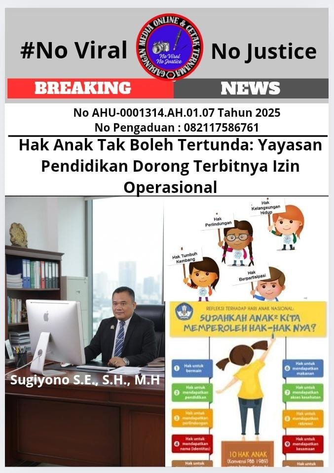 “Pasal 31 UUD 1945 dan UU No. 20 Tahun 2003 tentang Sisdiknas sudah jelas: setiap anak berhak memperoleh pendidikan bermutu. Penundaan izin operasional sama saja dengan menunda hak anak untuk belajar,” tegas Sugiyono.