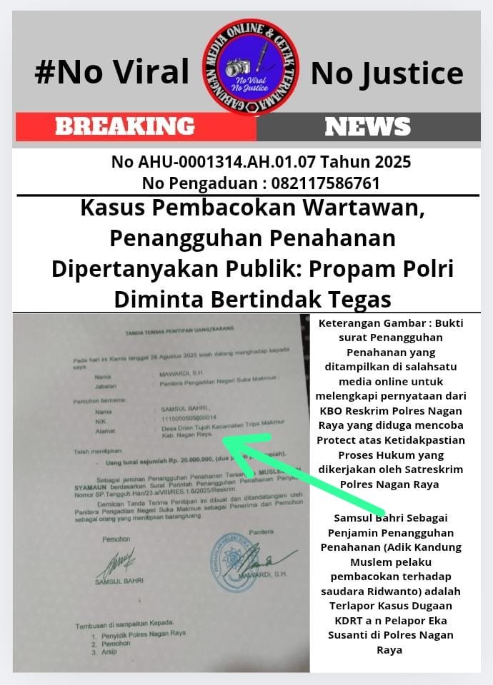 Bongkar periara.com Nagan Raya 20 September 2025 (GMOCT) – Polemik penangguhan penahanan tersangka kasus pembacokan wartawan terus menjadi sorotan publik. Meskipun secara hukum penangguhan penahanan diperbolehkan sesuai KUHAP Pasal 31, namun keputusan tersebut dinilai mencederai rasa keadilan masyarakat, mengingat kasus yang menimpa wartawan ini tergolong tindak kekerasan berat.
