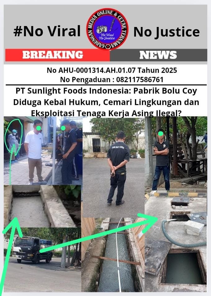 Bongkarperkara.com Kabupaten Bandung, 28 September 2025 (GMOCT) – Pabrik Bolu Coy milik PT Sunlight Foods Indonesia kembali menjadi sorotan tajam. Kali ini, bukan hanya soal pencemaran lingkungan yang berulang kali terjadi, tetapi juga dugaan eksploitasi tenaga kerja asing (TKA) ilegal. Aparat Penegak Hukum (APH) dan dinas terkait diminta untuk tidak menutup mata dan segera bertindak tegas.