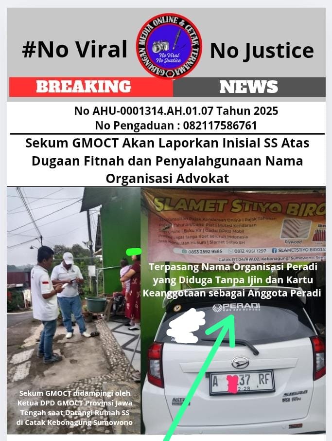 Sekum GMOCT Akan Laporkan Inisial SS Atas Dugaan Fitnah dan Penyalahgunaan Nama Organisasi Advokat