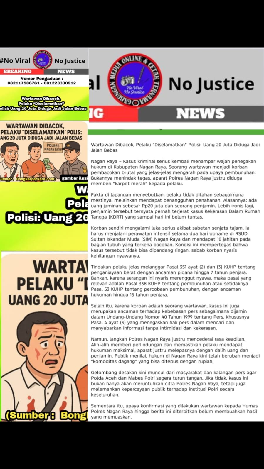 Gelombang desakan kini muncul dari masyarakat dan kalangan pers agar Polda Aceh dan Mabes Polri segera turun tangan. Jika tidak, kasus ini bukan hanya akan meruntuhkan citra Polres Nagan Raya, tetapi juga melemahkan kepercayaan publik terhadap institusi Polri secara keseluruhan.