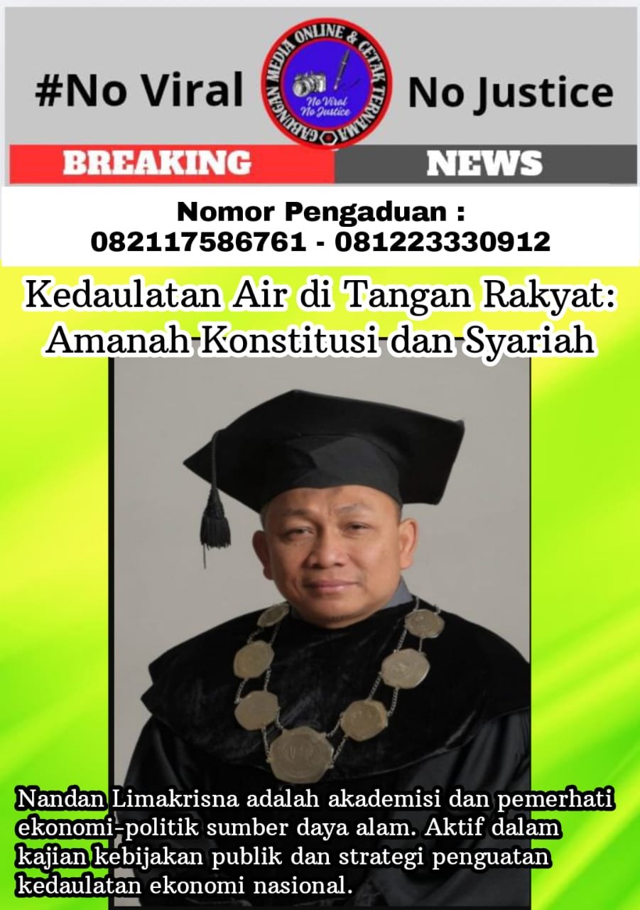Air adalah amanah Allah dan hak seluruh rakyat. Sudah saatnya rakyat tidak hanya menjadi penonton, tetapi pemilik sejati kedaulatan air di tanah sendiri, sesuai amanat konstitusi dan petunjuk syariah.