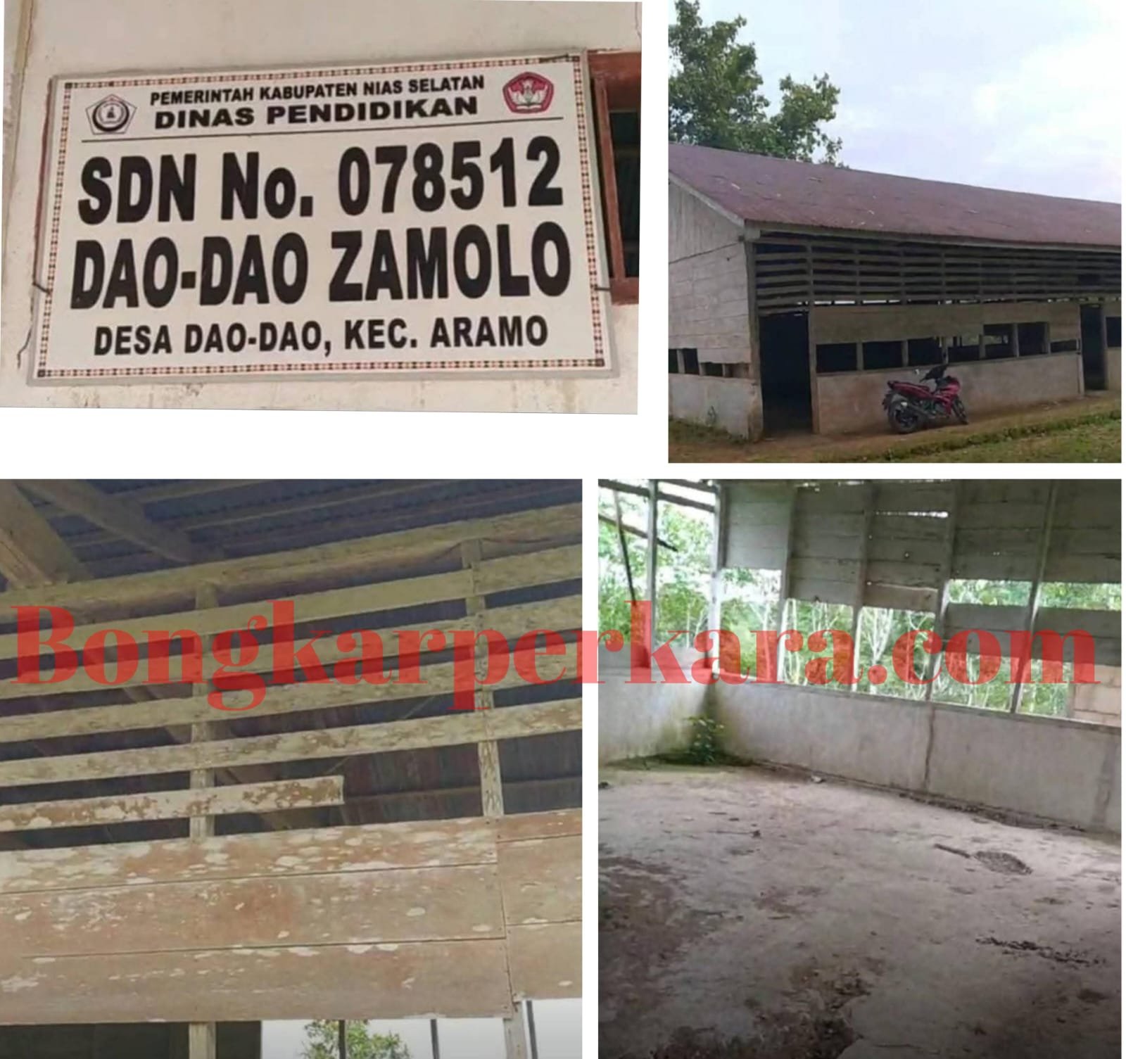 Kondisi Sekolah Dasar Negeri (SDN) No. 078512 Dao-Dao Zamolo di Desa Dao-Dao, Kecamatan Aramo, Kabupaten Nias Selatan, sungguh memprihatinkan. Bangunan sekolah tampak rusak parah, dengan dinding dan atap yang sudah tidak layak. Mirisnya lagi, ruang belajar tidak memiliki meja dan kursi yang memadai bagi siswa.