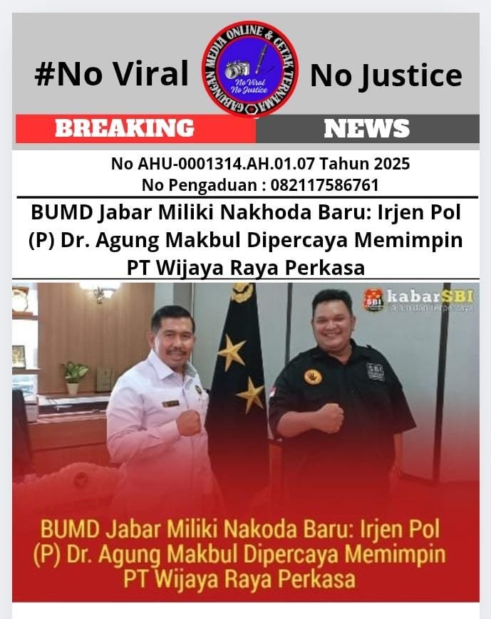 “Kami menyampaikan selamat dan sukses atas terpilihnya Irjen Pol (P) Dr. H. Agung Makbul sebagai Direktur Utama PT Wijaya Raya Perkasa. Kepemimpinan yang profesional, tegas, serta berorientasi pelayanan publik merupakan modal penting untuk membawa perubahan signifikan bagi BUMD Jawa Barat,” ujarnya.