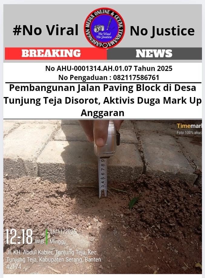 “Jika dikalkulasi, pekerjaan jalan paving block Desa Tunjung Teja, tanpa agregat A, biayanya lebih mahal dibandingkan biaya pekerjaan jalan lingkungan paving block Dinas Perkim Provinsi Banten tanpa agregat A. Tetapi berbeda mutu. Diduga kuat ada mark up biaya pekerjaan,” tegas Saepi.