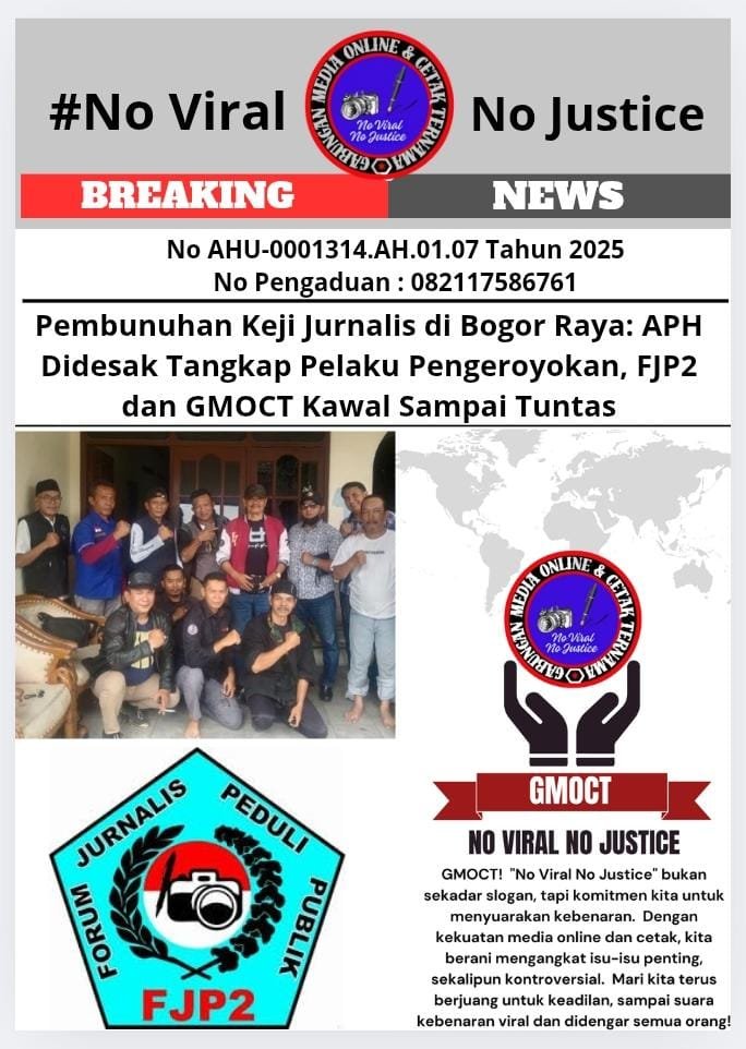 Sejumlah pengurus dan anggota Forum Jurnalis Peduli Publik (FJP2) Dewan Pimpinan Cabang (DPC) Bogor Raya, bersama Gabungan Media Online dan Cetak Ternama (GMOCT), Aliansi Para Insan Pers, serta Organisasi Kepemudaan (OKP) dari sekitar lokasi kejadian, secara tegas mendeklarasikan diri untuk melakukan pengawalan intensif terhadap penanganan kasus ini hingga tuntas di ranah penegakan hukum.