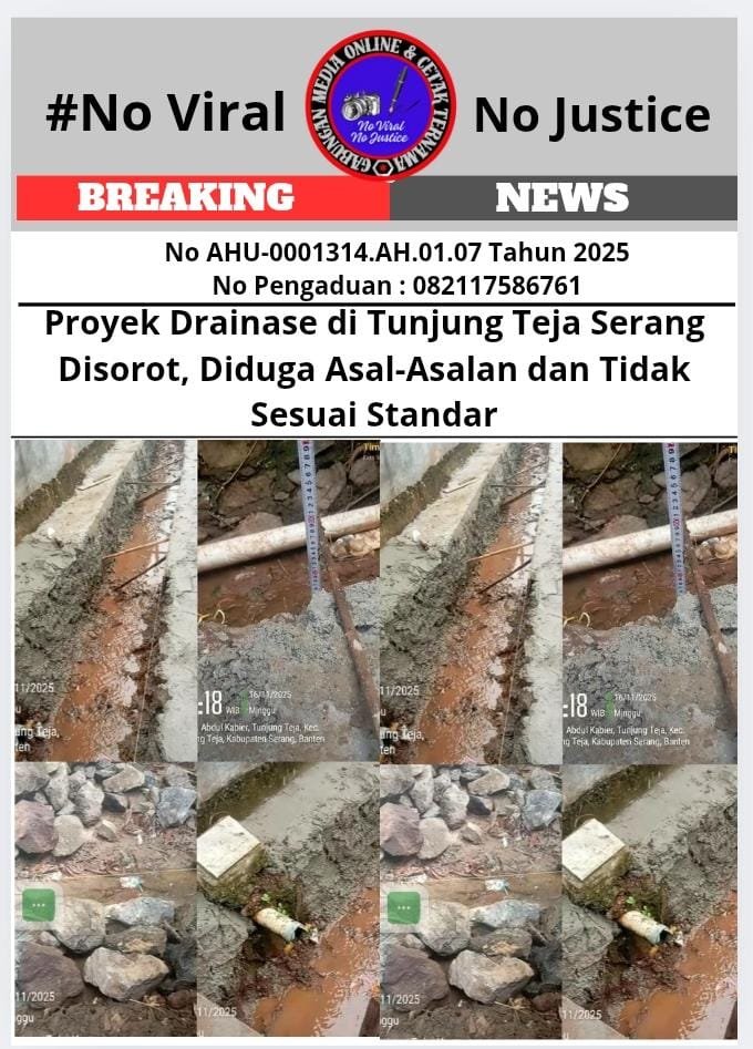 KabupatenSerang Bongkarperkara.com – (GMOCT) – Proyek pembangunan drainase sepanjang 98 meter di Kp. Tunjung Pasar RT.03 RW.01, Desa Tunjung Teja, Kecamatan Tunjung Teja, Kabupaten Serang, Banten, menuai sorotan tajam. Proyek yang menelan anggaran Rp. 108.011.828,- dari Sumber Dana Desa (DDS) tahun 2025 ini dikerjakan secara swakelola oleh Desa Tunjung Teja, namun kualitasnya dipertanyakan.