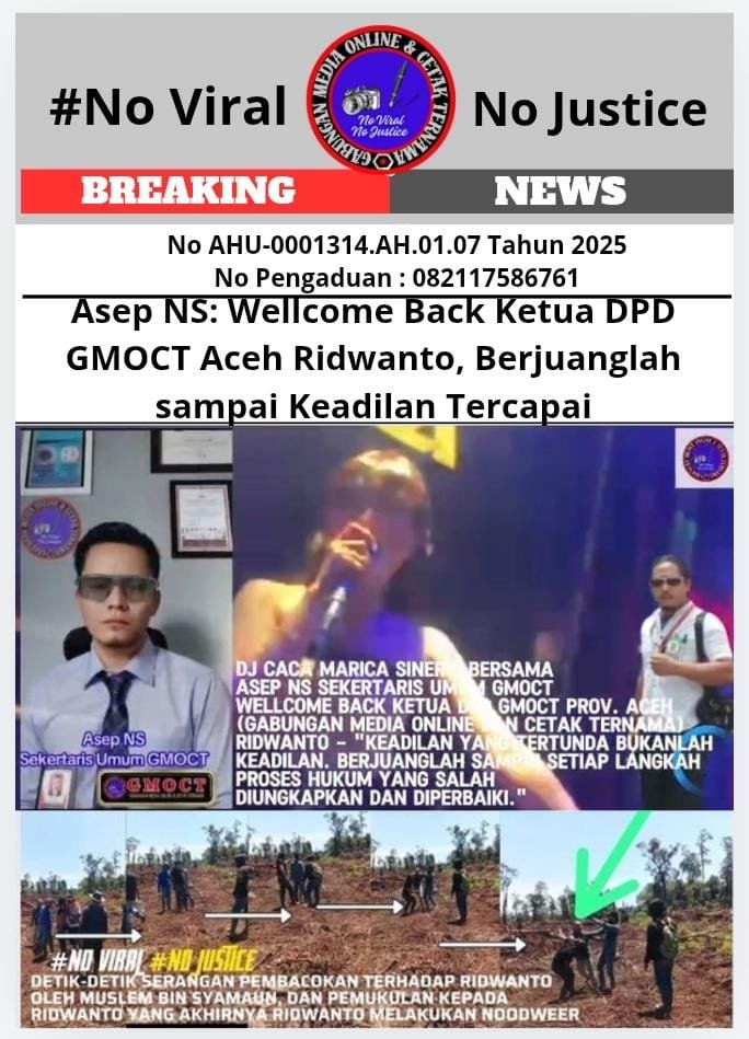 Agung Sulistio, Ketua Umum GMOCT, mengucapkan selamat datang dan bergabung kembali Ridwanto di lingkungan organisasi. “Kami sangat senang dapat kembali bekerja sama dengan Ridwanto sebagai Ketua DPD GMOCT Provinsi Aceh sekaligus Pemred dari Bongkarperkara.com dan Penajournalis.my.id. Semoga dengan kembalinya beliau, kita dapat semakin memperkuat peran media dalam mengawal kebenaran dan keadilan bagi masyarakat,” ucapnya.