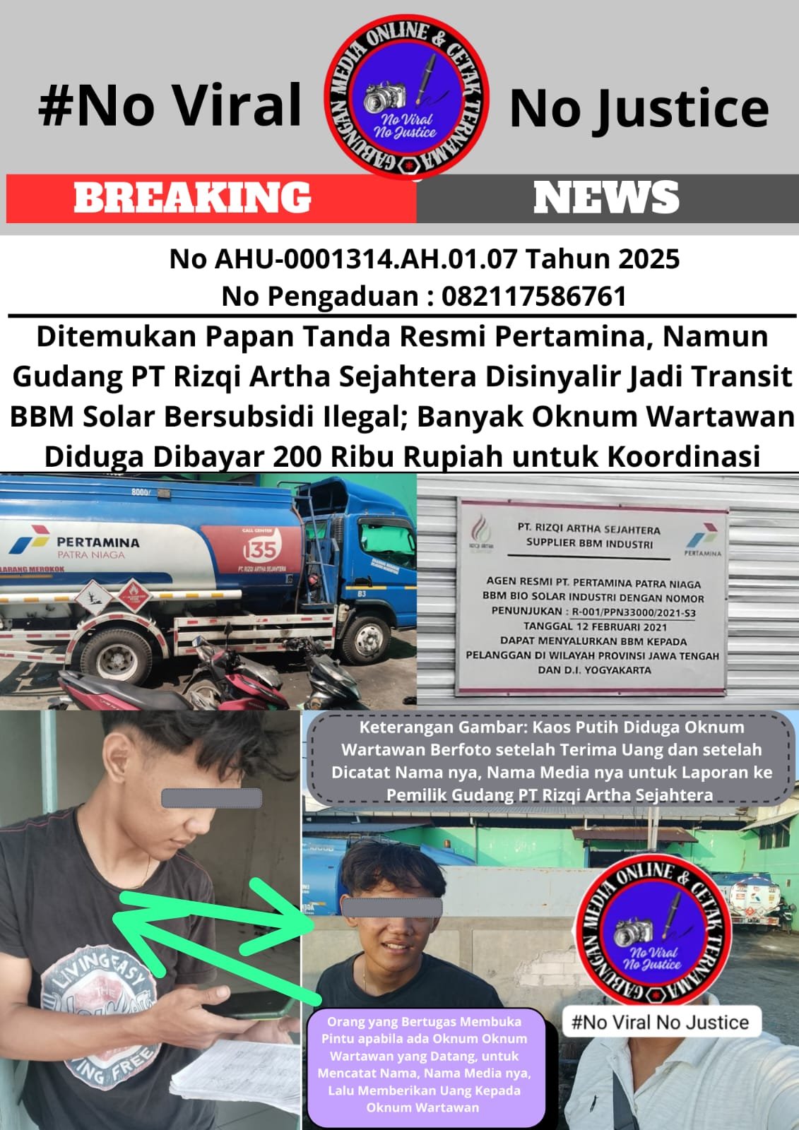 Ditemukan Papan Tanda Resmi Pertamina, Namun Gudang PT Rizqi Artha Sejahtera Disinyalir Jadi Transit BBM Solar Bersubsidi Ilegal; Banyak Oknum Wartawan Diduga Dibayar 200 Ribu Rupiah untuk Koordinasi