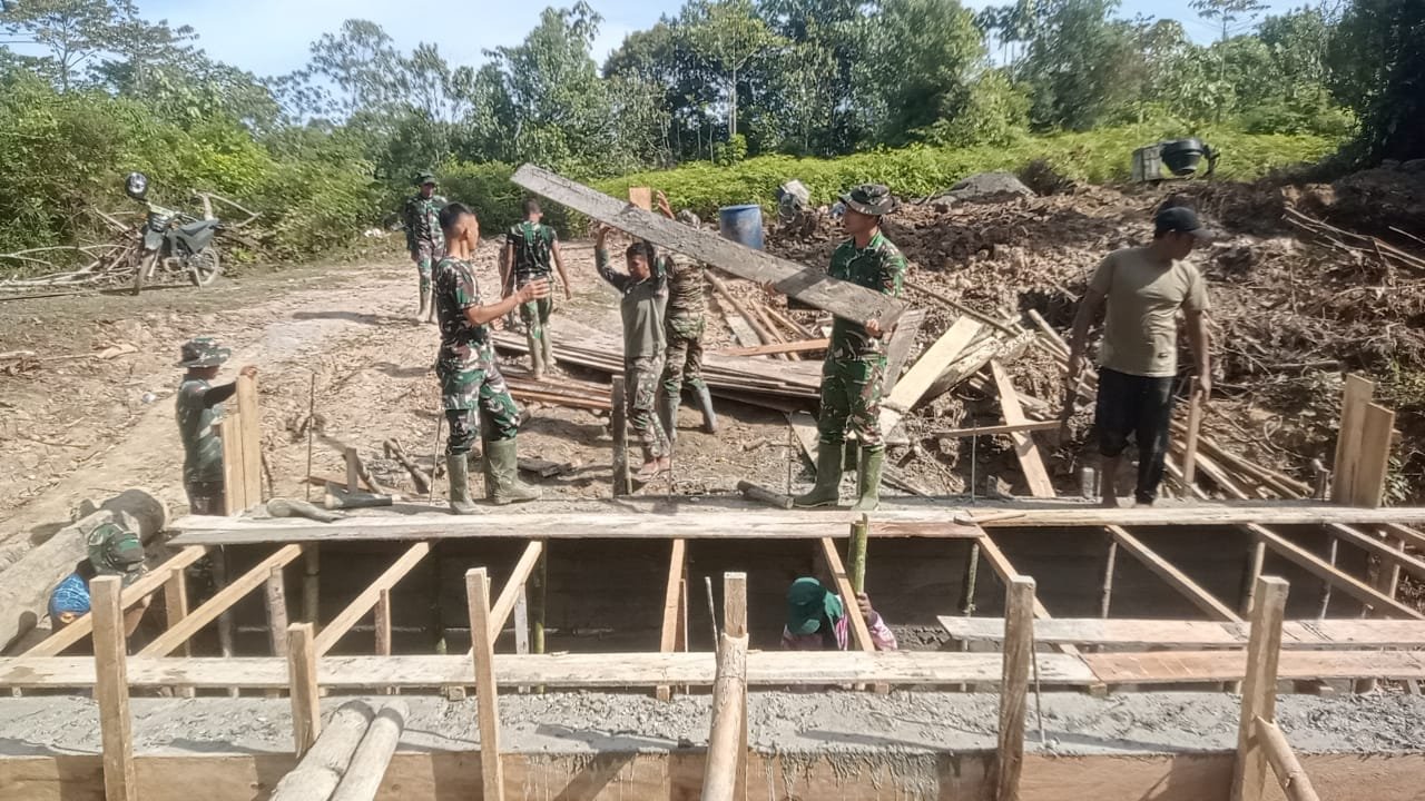 Di Desa Ujong Blang, Kecamatan Beutong, kebersamaan antara anggota TNI dan warga tampak seperti keluarga yang saling mendukung. Mereka bekerja bersama dalam pembangunan jalan sepanjang 3.100 meter menuju Desa Pante Ara, pembangunan fasilitas MCK, penyediaan air bersih, pembangunan box culvert, serta perehaban rumah tidak layak huni.