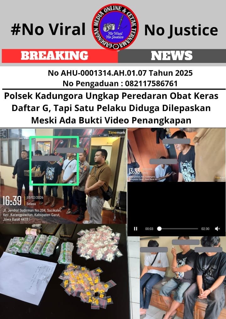 Bongkar perkara.com KABUPATEN GARUT, JAWA BARAT (GMOCT) 16 Februari 2026 – Polsek Kadungora berhasil mengungkap kasus dugaan peredaran obat keras daftar G tanpa izin resmi pada Selasa (10/2/2026) sekitar pukul 15.53 WIB. Penangkapan dilakukan di Warung Jl. Raya Pasar Baru Kadungora No.168 RW/70 Karangmulya, Kecamatan Kadungora.