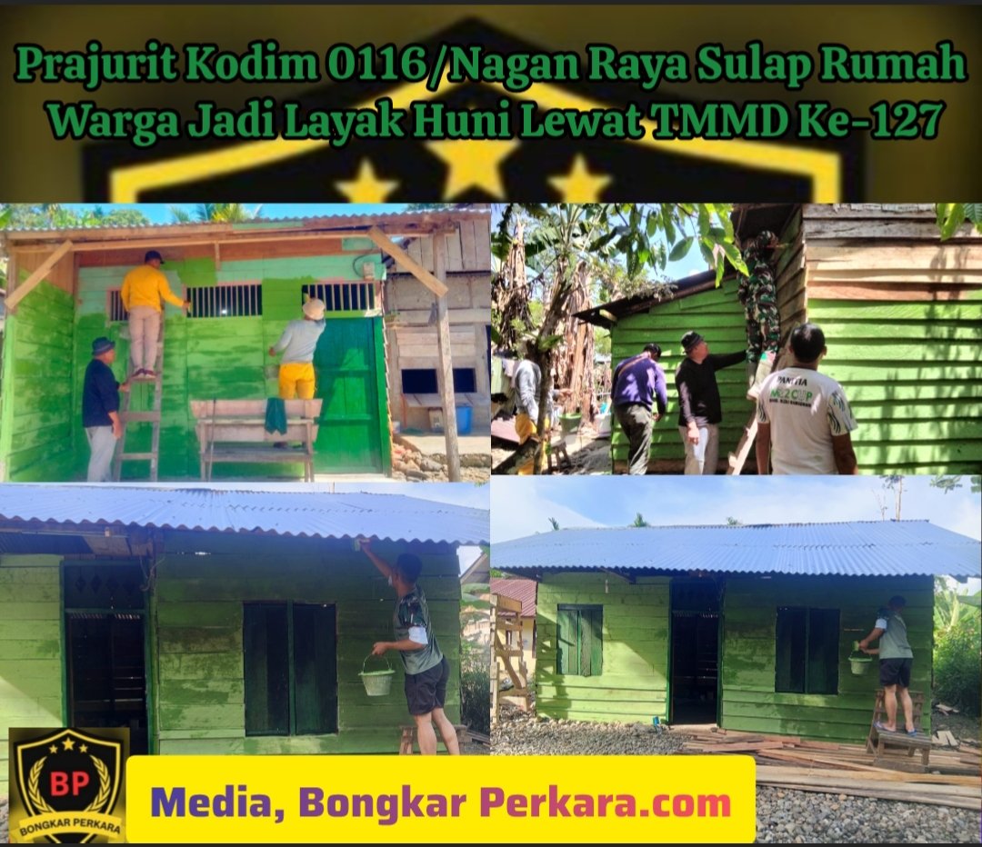 Bongkar perkara.com Nagan Raya – Program TNI Manunggal Membangun Desa (TMMD) Ke-127 yang dilaksanakan oleh Kodim 0116/Nagan Raya kembali menunjukkan kepeduliannya terhadap masyarakat. Salah satu sasaran fisik program tersebut adalah perehaban Rumah Tidak Layak Huni (RTLH) milik warga bernama Ibnu Hasyim, Minggu (22/2/2026).