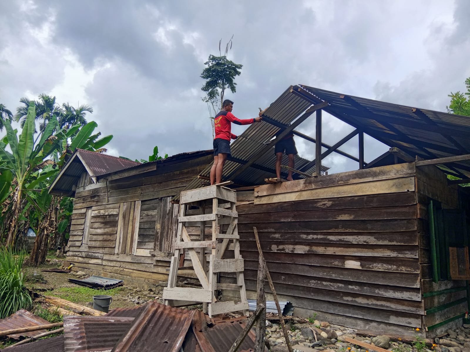 Menurutnya, dari empat titik sasaran pembangunan RTLH, salah satu unit rumah kini telah memasuki tahap penggantian atap seng yang sebelumnya mengalami kerusakan cukup parah.