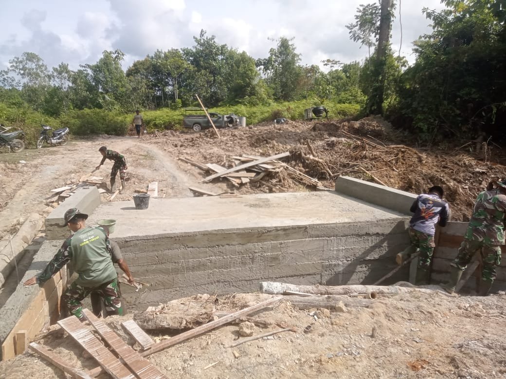 Untuk pengerjaan hari ini lanjut Danramil, TNI dan warga melaksanakan pembukaan mal cor dan perataan tanah timbun atas box culver.