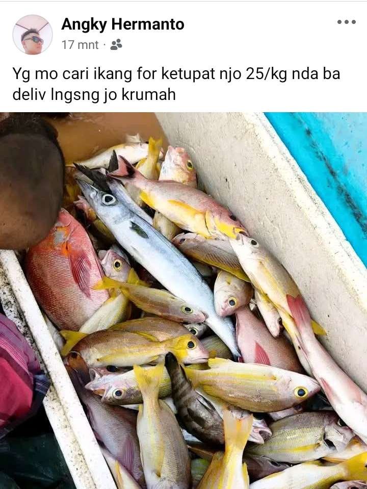 Pemilik akun mengunggah foto berbagai jenis ikan segar pada Selasa 31 Maret 2026, dengan narasi penawaran harga murah, yakni Rp 25.000 per kilogram, untuk kebutuhan hari raya (ketupat). Dalam postingannya, pelaku menuliskan bahwa ia tidak melayani pengiriman (delivery) dan meminta calon pembeli langsung datang ke rumahnya.