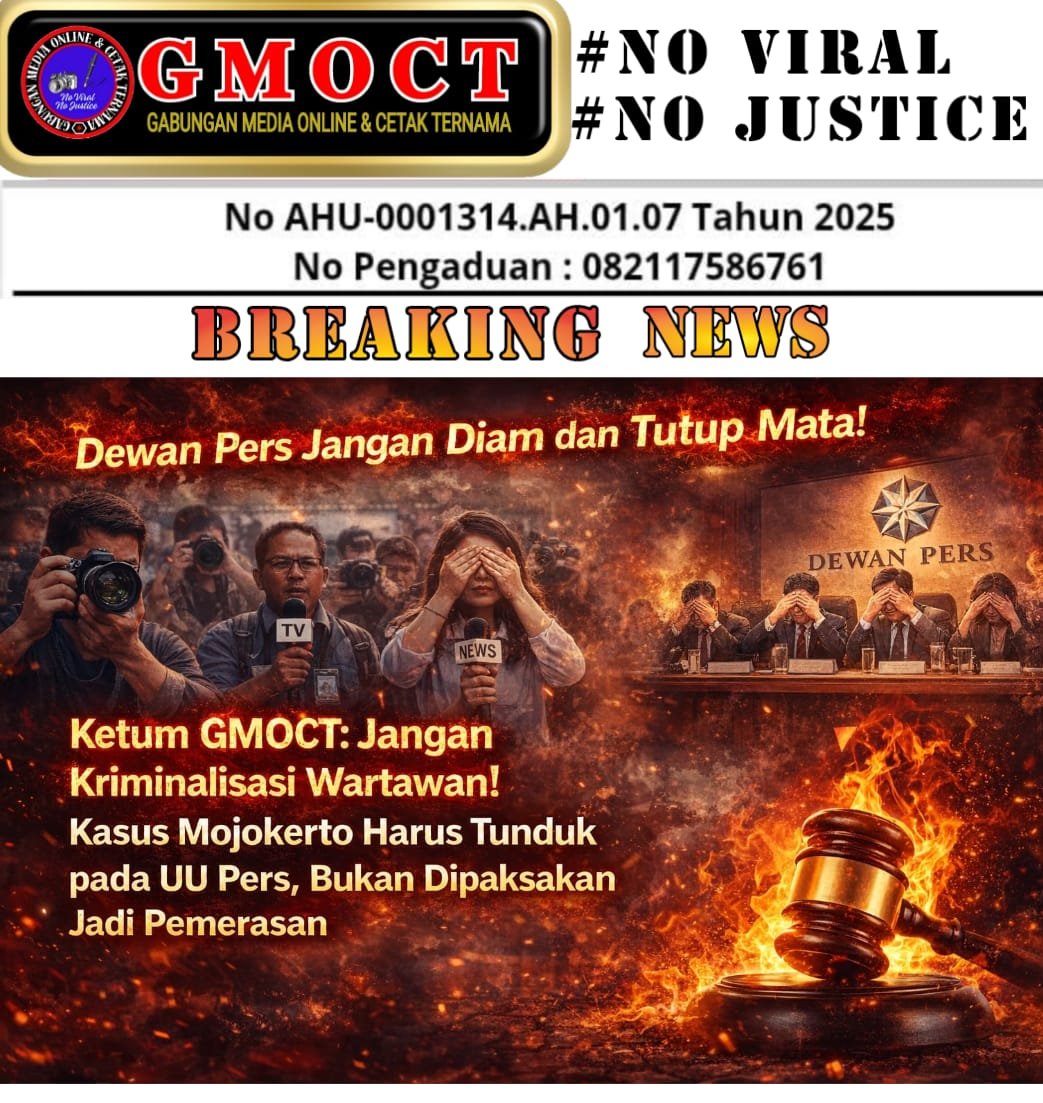 Bongkar Perkara.com Pemalang, _ Kasus operasi tangkap tangan (OTT) terhadap seorang jurnalis di Mojokerto memicu polemik serius dan memunculkan kekhawatiran akan potensi kriminalisasi terhadap insan pers. Ketua Umum GMOCT mengingatkan aparat penegak hukum agar tidak gegabah membawa persoalan jurnalistik ke ranah pidana tanpa memahami konteks yang utuh.