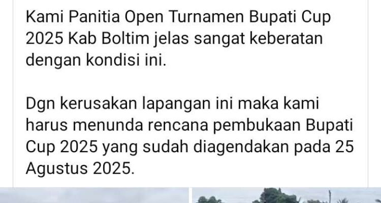 Boltim — Lapangan Bogani Kotabunan, Kabupaten Bolaang Mongondow Timur (Boltim), mengalami kerusakan